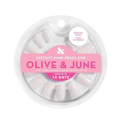 Olive & June Press-On Fake Nails - Minimalist - Milky Microglitter - M Oval - 42ct