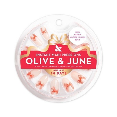 Olive & June Pressies Fake Nails - XS Round - Candy Cane Crush - 28ct