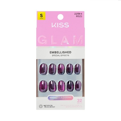 KISS Nails GLAM Embellished Press-On Fake Nails - Short Round - One n Only - 35ct