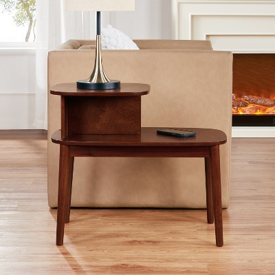 HomeStock End Table with Two Shelves, Sleek Transitional Design, Unique Dimensional Side Panels, MDF Construction for Living Room