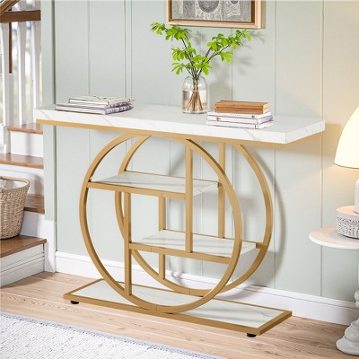 ORRD 39.4” Industrial Console Table, 4-Tier Entryway Table with Circle Metal Frame, Rustic Brown Sofa Table for Living Room & Hallway