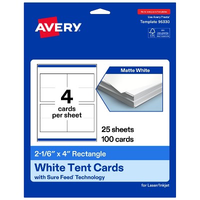 Avery Printable Tent Cards, 3.5" x 11", White with Embossed Border, 50 Blank Place Cards for Laser and Inkjet Printers (5309)