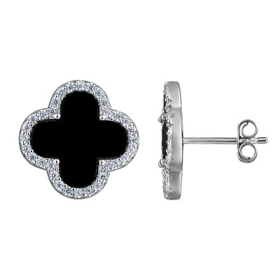 Bella Silver Sterling Silver Open Pearshaped Infinity Design Micro Pave Statement Earrings - Silver