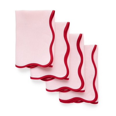 Solino Home Linen Dinner Napkins Set of 4 for Dining Table, Holiday and Everyday Table Decor - Giselle Scallop Edge, 20 x 20"
