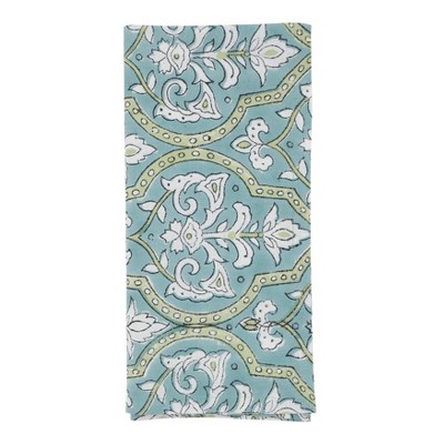 Saro Lifestyle Ornamental Pattern Cotton Decorative Napkins (Set of 4) – Illustrated Motif Design for Dining and Entertaining, 20"x20", Blue