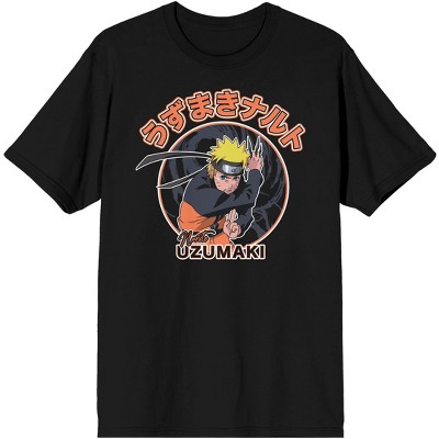 Mens Black Naruto Anime Cartoon Short Sleeve Graphic Tee Shirt