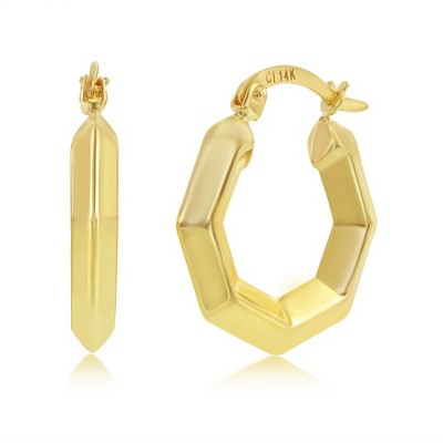 Classic Gold 14K Yellow Gold, Geometric 22x20mm Hoop Earrings - Gold
