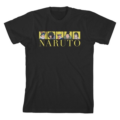 Naruto Classic Gold Character Squares Boy's Black T-shirt