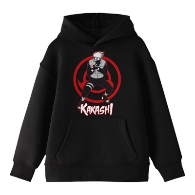 Naruto Kakashi Action Pose Long Sleeve Youth Black Hooded Sweatshirt