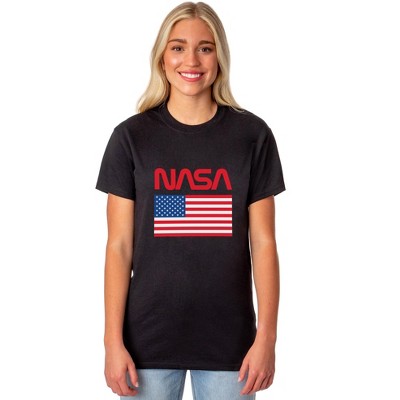 NASA Retro Worm Logo American Flag Graphic T Shirt Men or Women Licensed Brisco Brands