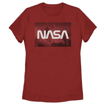 Women's NASA Space Shuttle Blast Off Text Over Lay T-Shirt