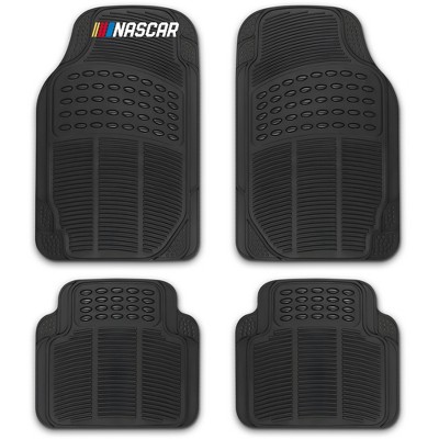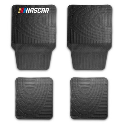 NASCAR Essential 4-Piece Car Floor Mats All-Weather Protection Universal Fit for Cars Trucks SUVs Durable Hard-Wearing Rubber Trim-to-Fit Black
