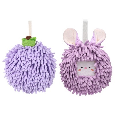 REGALWOVEN 2 Packs Fluffy Chenille Rabbit Shape Cute Soft Absorbent Hanging Ball Hand Towels 7" x 7"