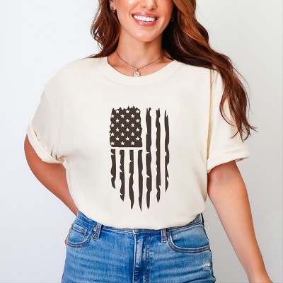 American Flag Distressed - Women's Garment Dyed Graphic T-Shirt