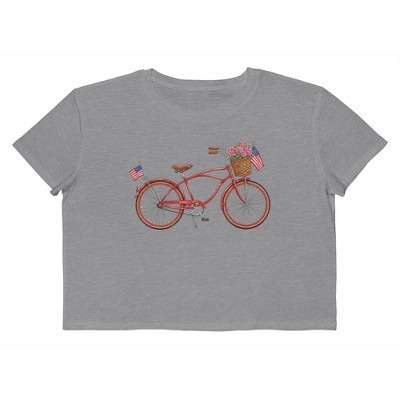Rerun Island Women's American Bicycle Americana 4Th Of July Short Sleeve Graphic Cotton Cropped Loose T-shirt - Athletic Heather XXL