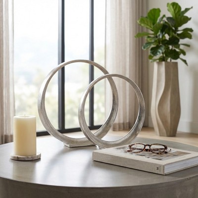 Metal Circle Sculpture for Home and Bathroom Decor - Aluminum Ring Decorative Accent for Room, Shelf and Table - Set of 2