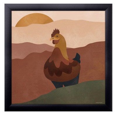 12" x 12" Mod Boho Rooster Framed Wall Art, Contemporary Nature and Animal Home Decor, Glass Facing and Hanging Hardware