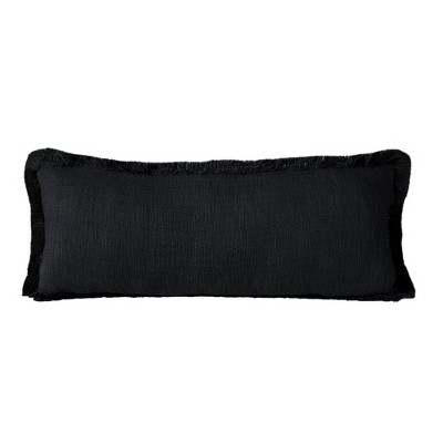 LR Home Ox Bay Hand-Woven Black Distressed All-Natural Cotton Pillow Cover