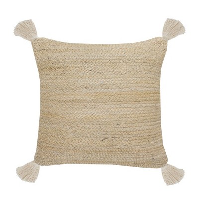 LR Home Ox Bay Hand-Woven Tan Solid All-Natural Jute Pillow Cover