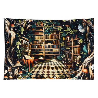 Enchanted Tree Library Tapestry Fantasy Forest Polyester Non-Shedding Wrinkle-Resistant Cozy Wall Hanging for Reading Nooks 50x60 iniches