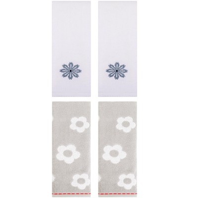 REGALWOVEN 4 Pcs Cotton Soft Absorbent Floral Pattern Hand Towel 13" x 30"