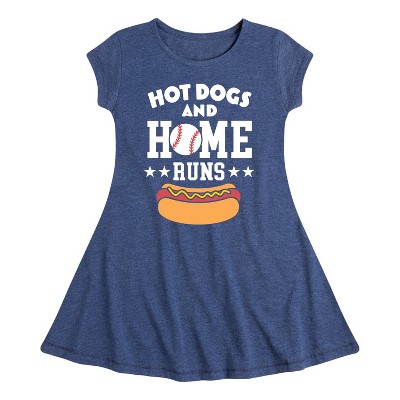 Girls' - Instant Message - Hot Dogs And Home Runs Fit & Flair Cap Sleeve Graphic Dress