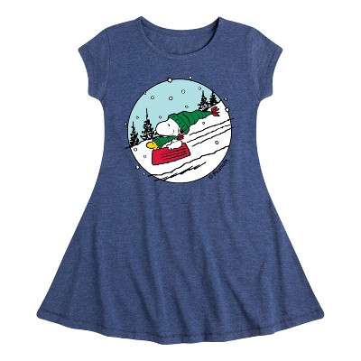Girls' - Peanuts - Snoopy Woodstock Sled Fit & Flair Cap Sleeve Graphic Dress