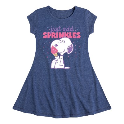 Girls' - Peanuts - Just Add Sprinkles Fit & Flair Cap Sleeve Graphic Dress