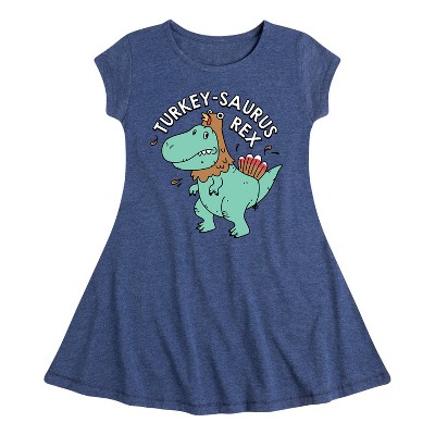 Girls' - Instant Message - Turkeysaurus Rex Fit & Flair Cap Sleeve Graphic Dress