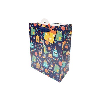 Bows And Sparkles Small Monsters Birthday Gift Bag with Tag Navy
