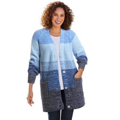 Roaman's Plus Size Drop Needle V-Neck Lightweight Sweater Knit