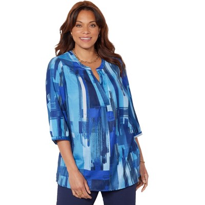 Plus Elbow Sleeve Henley Tunic Top - 24seven Comfort Apparel™