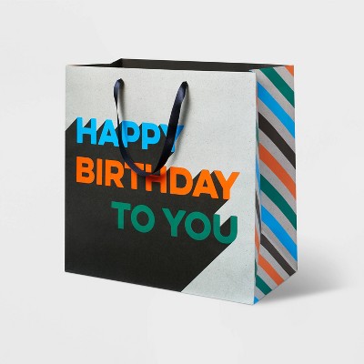 Medium 'Happy Birthday' Rainbow Striped Birthday Gift Bag Colorful - Spritz™