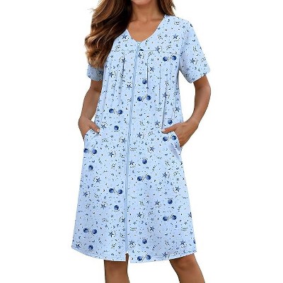 Ekouaer Nightgowns for Women Short Sleeve House Dress with Pockets Floral Print Mumu Dress