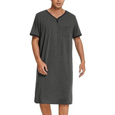 Ekouaer Men's Nightshirt Nightwear Comfy Big&Tall Short Sleeve Henley Sleep Shirt