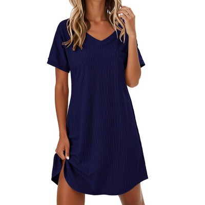 Ekouaer Sleep Shirts for Women Short Sleeve Night Shirts for Sleeping Pullover Nightgown Soft Nightdress Navy Blue L