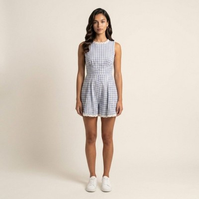 Anna-Kaci Women's Gingham Romper Sleeveless Lace Trim Fit and Flare Lightweight Casual One Piece