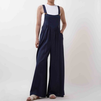 Women's Wide Leg Overall- Breathable Viscose/Linen Blend with Adjustable Straps Cherie Code