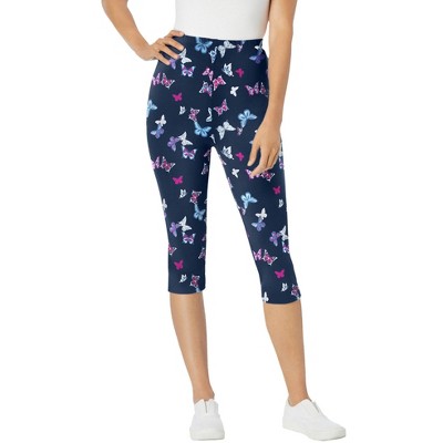 Woman Within Stretch-Cotton Knit Pull-On Printed Capri Leggings