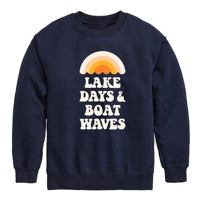 Boys' - Instant Message - Lake Days And Boat Waves Graphic Long Sleeve Fleece Sweatshirt