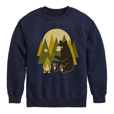 Boys' - Instant Message - Bear Roasting Marshmallows Graphic Long Sleeve Fleece Sweatshirt