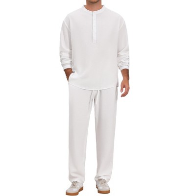INSPIRE CHIC Men's Linen Outfits Long Sleeve Beach Shirt and Pant 2-Piece Sets