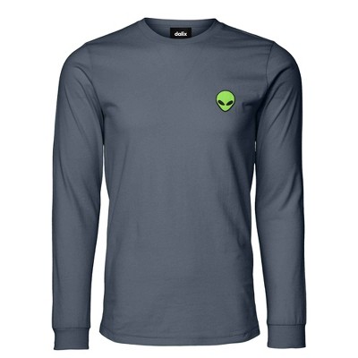 Dalix Alien Embroidered Cotton Classic Fit Long Sleeve Crewneck Tee Shirt Mens