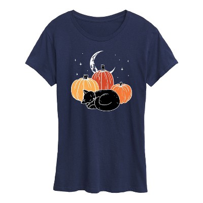 Women's - Instant Message - Black Cat Pumpkin Nap Short Sleeve Graphic T-Shirt