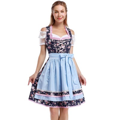 Clearlove Women’S Dirndl Dress – 3‑Piece German Festival Costume with Zip-Up Square Neck & Floral Embroidery