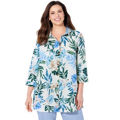 ellos Cotton Spandex Boat Neck 3/4 Sleeve Button Trim Tee