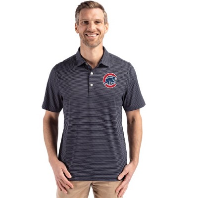 Chicago Cubs Cutter & Buck Forge Eco Heather Stripe Stretch Recycled Mens Polo - Navy Blue Heather - Large