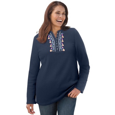 Woman Within Embroidered Thermal Henley Tee