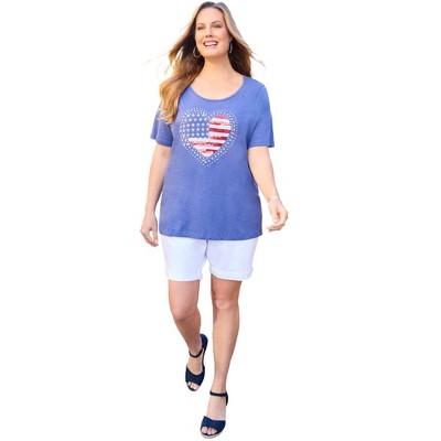 Roaman's Ultimate Rhinestone V Neck Tunic