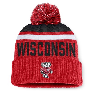 NCAA Wisconsin Badgers Knit Cuffed Pom Beanie: Cotton Pull-On Hat, Adjustable, One Size Fits Most